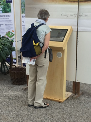Es handelt es sich um ein Informationsmodul, welches pultähnlich aufgebaut ist und über einen Touchscreen bedient werden kann. Verschiedene Seiten können je nach Interessensfeld und Zielgruppe aufgerufen werden, wobei Videos, Texte und Bilder zum Ökolandbau informieren. Die Inhalte können jederzeit aktualisiert und an die Zielgruppe und dem thematischen Fokus der Veranstaltung angepasst werden.
