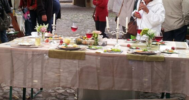 Beim Bio-Candle-Light-Dinner werden die Herkünfte verschiedener Lebensmittel sowie die Unterschiede von Bio- und konventioneller Lebensmittelproduktion aufgezeigt. Die geschieht über einen festlich gedeckten Tisch, auf dem sich Speisen und Erklärungen befinden. Die angerichteten Speisen sind Lebensmittelattrappen (Food Dummies), die individuell zusammen gestellt werden können. Auf laminierten Karten werden Infos z.B. zur Eierproduktion, zum Gemüseanbau, Tierhaltung oder auch zum Weinanbau kommuniziert. Dazu darf gerne ein Preisvergleich zwischen konventionellen und Bioprodukten ausgelegt werden. Auch vegetarische, vegane Ernährung und fairer Handel können thematisiert werden.
